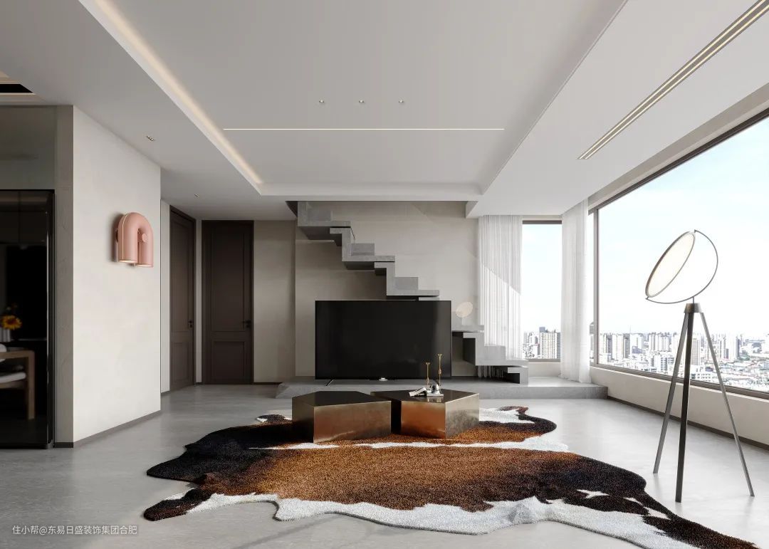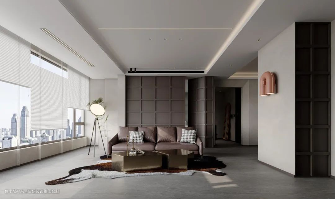 轻盈的金属质感异形茶几,搭配充满设计感的灯具,为客厅空间增添无限魅力,亲朋好友围坐在怀旧的皮质沙发上,畅谈生活趣事。