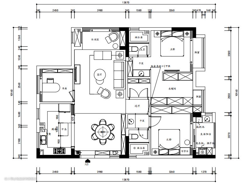 🔔平面图 ♦️设计理念 ▫️结合屋主的生活喜好和入户需求,在原就缺乏玄关收纳的空间,定制了排玄关鞋柜 ▫️客厅南边的阳台隔断打通,形成一个连贯的客餐厅南北通透格局,充分展示了大厅的魅力 ▫️阳台改造成休闲区域,阳台收纳柜门利用轻法式元素的拱形模式,与整个空间完美融合一起 ▫️主卧套房完全是满足女主人喜好设计的,独卫➕独立衣帽间格局,可能每个女生看到都会倾心的卧室风格了吧