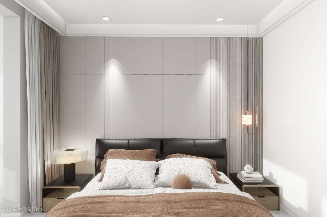卧室延续了整体的风格,不同材质的拼接体现出宁静的空间氛围。柔软的布艺床品将空间的整体气质变得更加舒适放松。