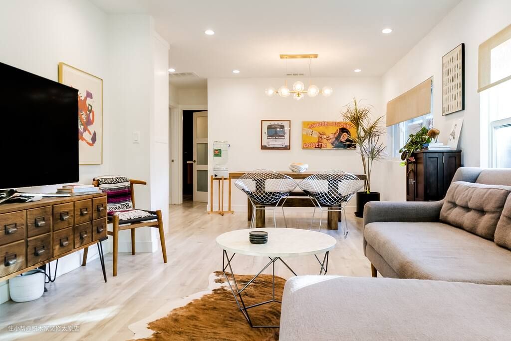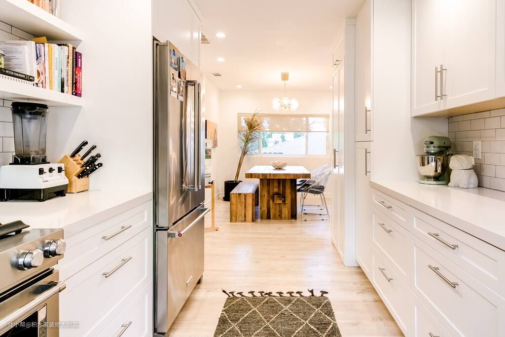 这是一套北欧风的装修案例,设计师以菱花白为主色调,点缀以黑色、中性灰色和原木色,融入木质元素和布艺元素,为业主打造了一个温馨舒适的家居空间。设计师采用了客餐厅一体化的设计思路,将餐厅的位置设计在客厅另一端,不仅合理有效地利用了空间,而且为业主打造了一个宽敞舒适的就餐空间。为了增强空间的通透度,设计师拆除了厨房外侧的墙体隔断,打造了一个明亮大气的烹饪空间。