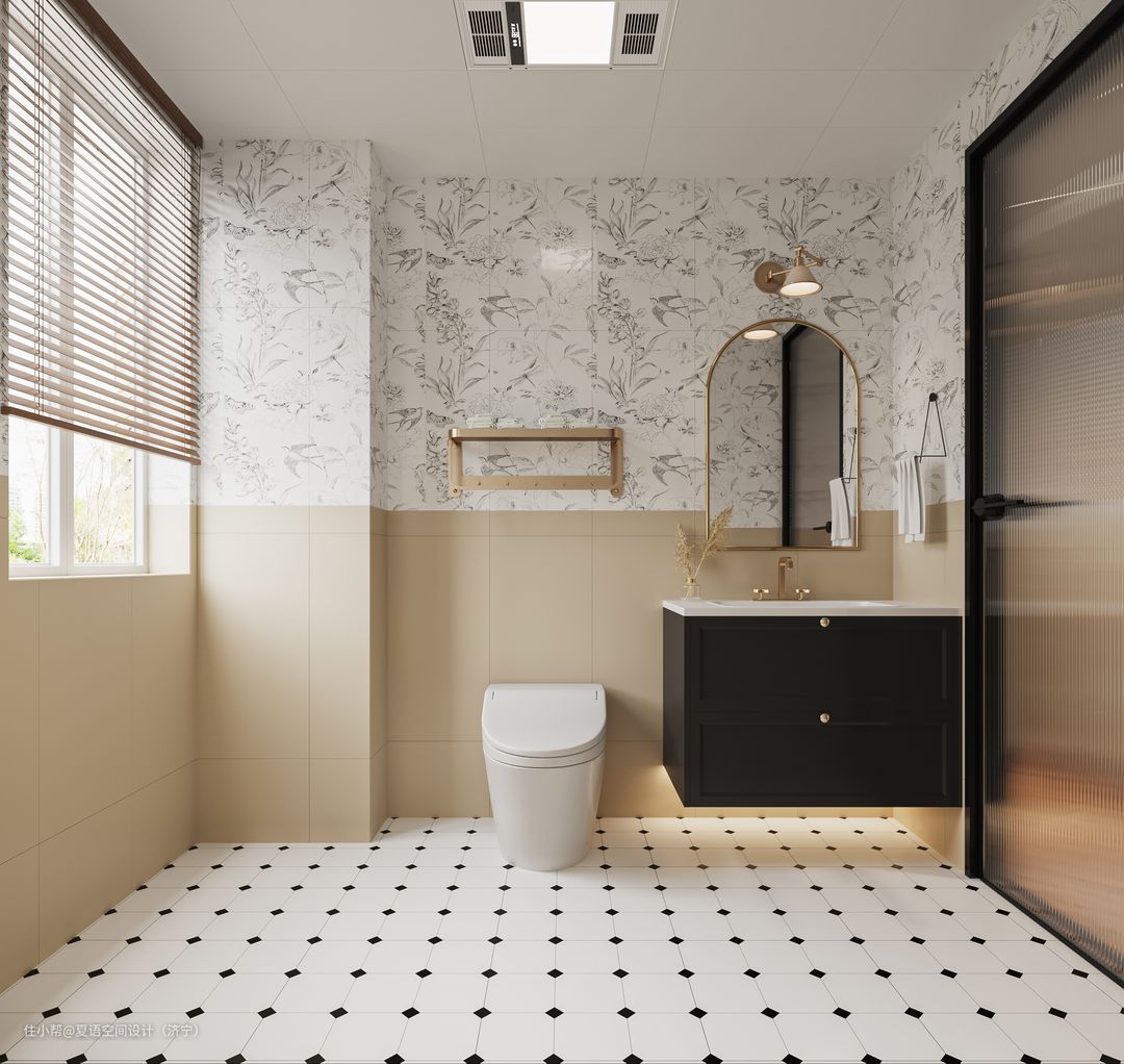 卫生间上墙砖与地砖相呼应,让整个空间层次分明。