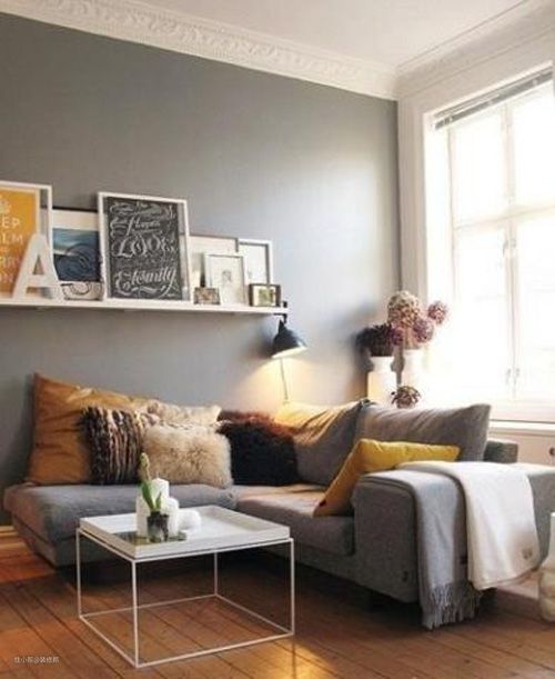 如果你不太了解照片墙的构成法则,担心贴的歪七扭八不好看的话,最实用的做好就是给墙面做个置物架。单层板做成一个简单的陈列架,将照片、装饰画按照次序摆放上去也不失为一种可取的方法。