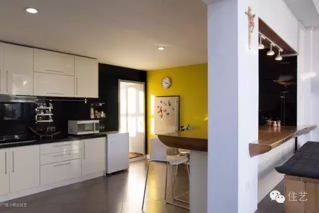 这个位于台湾新竹市的“彩色小屋”,整个家被设计师营造出一种梦幻的缤纷感,屋主对于粉紫橙绿4种颜色的喜爱在空间中体现得淋漓尽致。这个橙色的开放式厨房就是她平日里常待的地方。