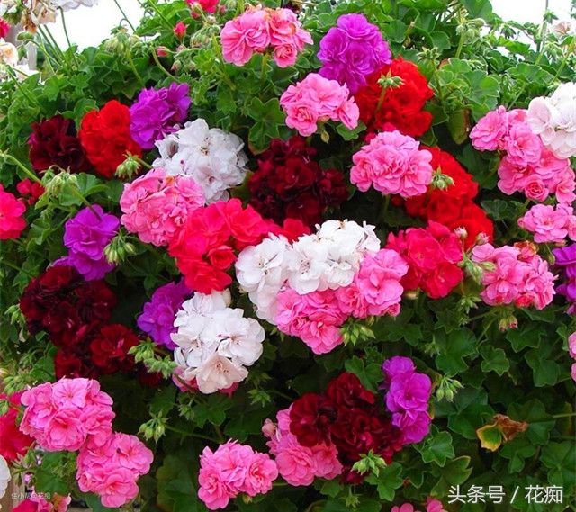天竺葵,多年生草本植物,新生枝条呈肉质,但是随着生长,接近土壤部分枝条会变得木质化,天竺葵品种繁多,花色多样,一年至少有三季花开,而且还很容易就将其养成爆盆状,平时养殖天竺葵可以用草炭和珍珠岩按照4:1比例配置花土,然后放在光照特别足的位置养护,平时略微少水,但不能太干燥,多施加磷钾元素较多的肥料,进入冬季之后,根据植型需要进行一次重剪,在早春时节最好将其放在一个5-10度环境下进行低温春化,这样会更利于花芽的形成。