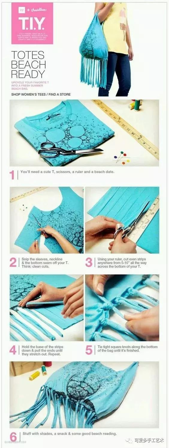 最后我们来学习一个旧T恤做的包包教程,这种做法比想像中更有档次哦。