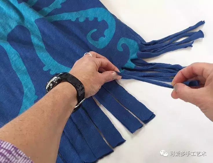 衣服的下摆部分只要剪长一点,流苏就会更长一点。