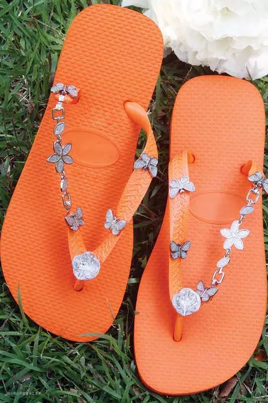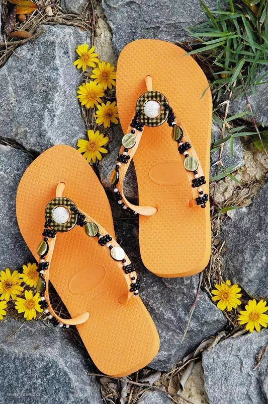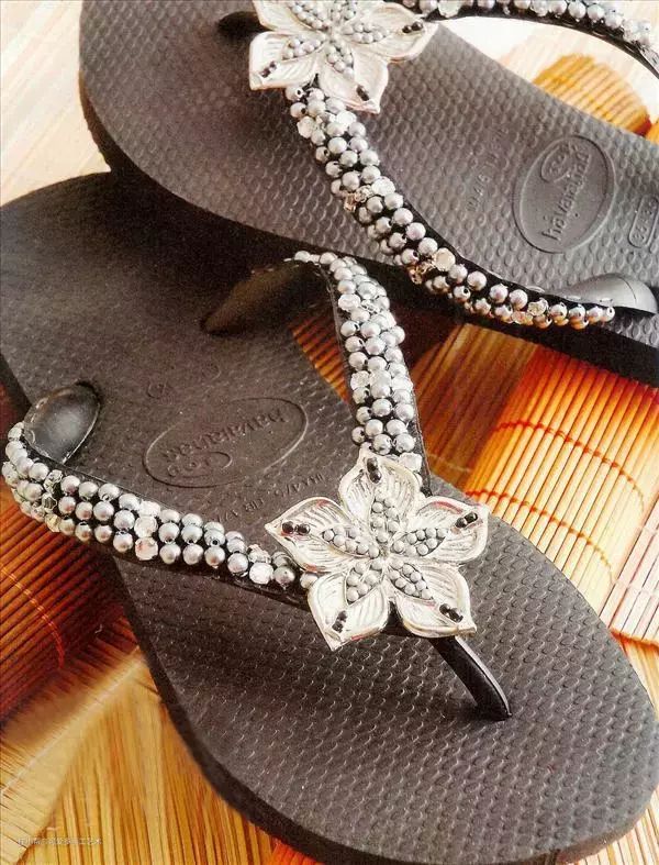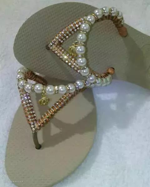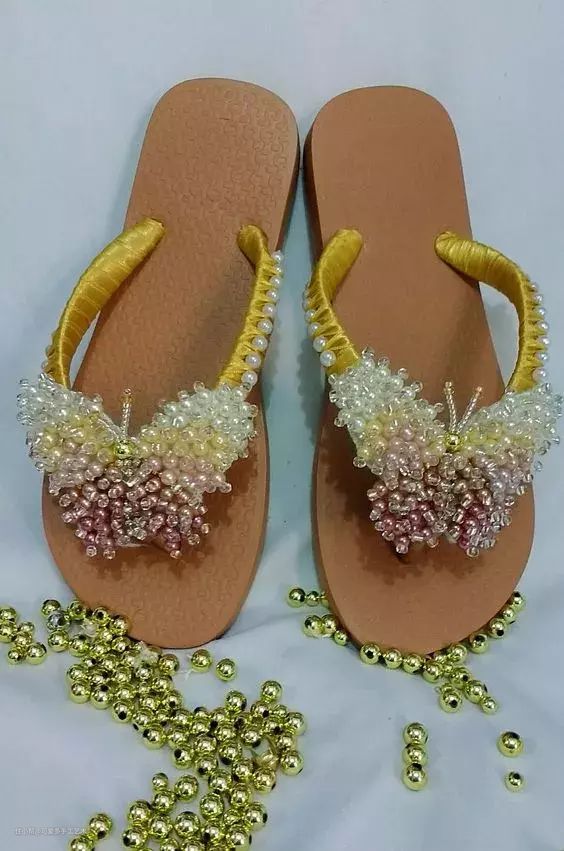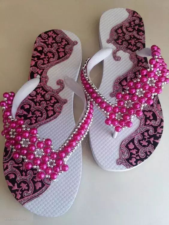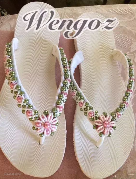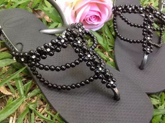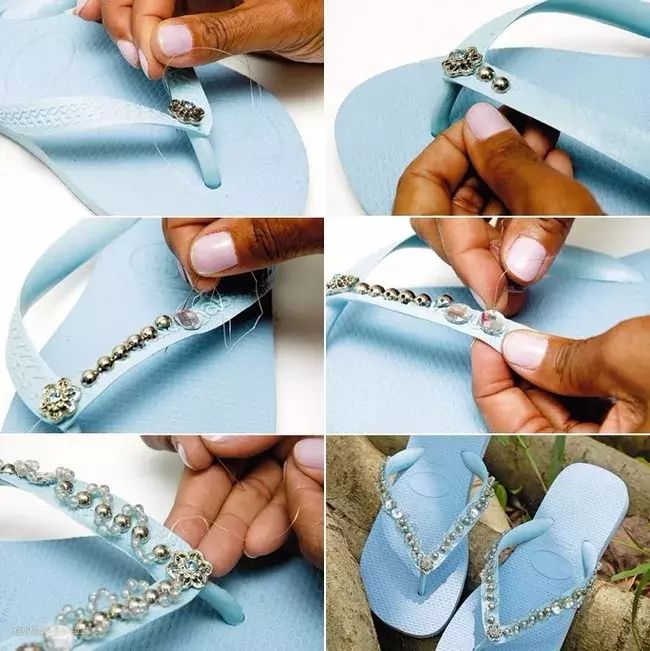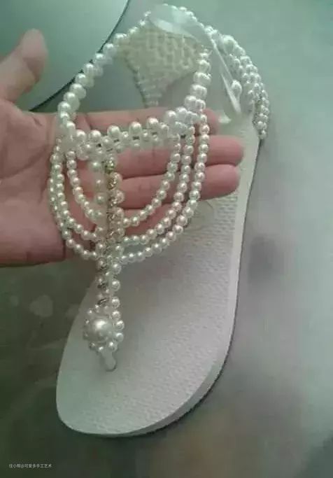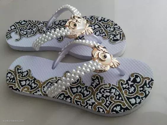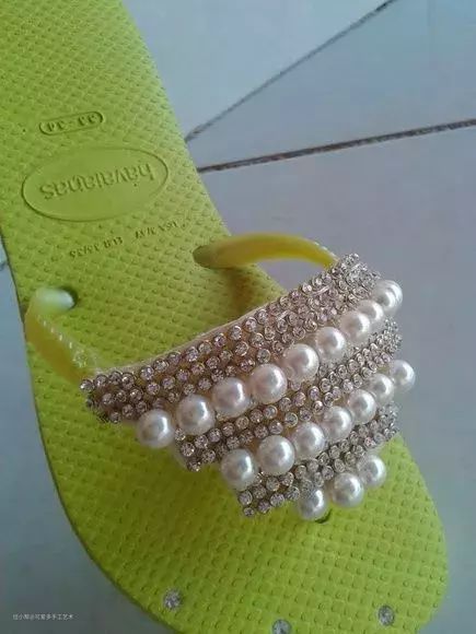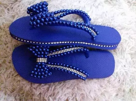这么热的天,大家有没有穿人地拖的习惯?只局限于在家穿吗?有想过穿上人字拖走在街上既不显得尴尬却让人羡慕吗?十几元一双的人字拖,只需要用普通的珠子,动手改一改,秒变上百元的时尚凉鞋。对于比较旧的人字拖,还能穿的情况下,都可以拿出来改改哦!