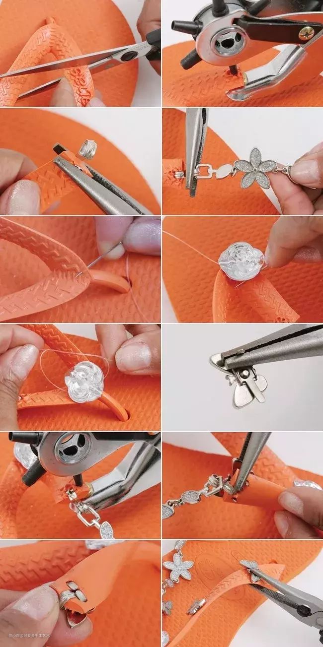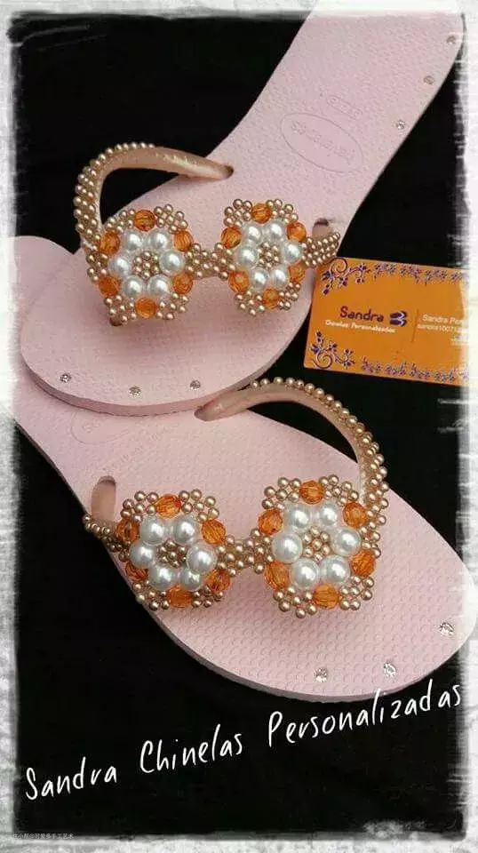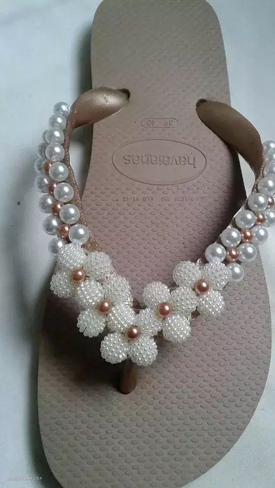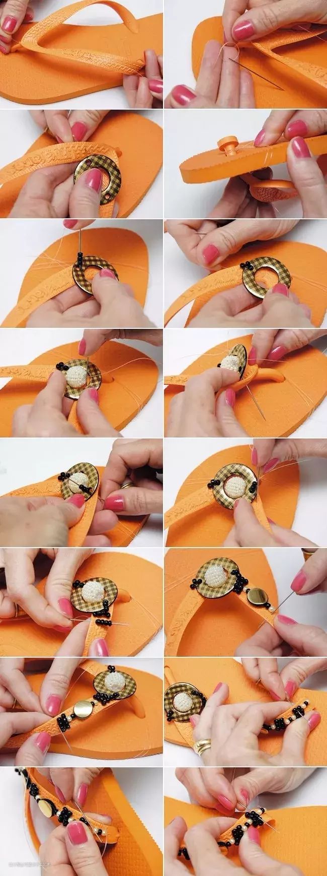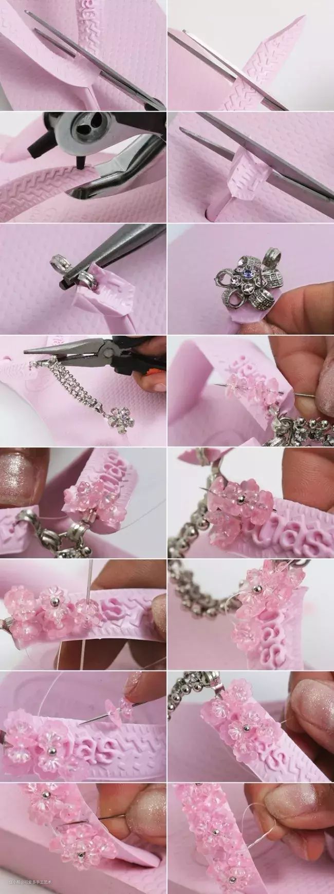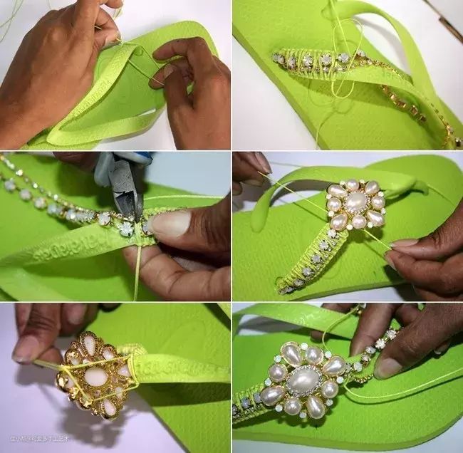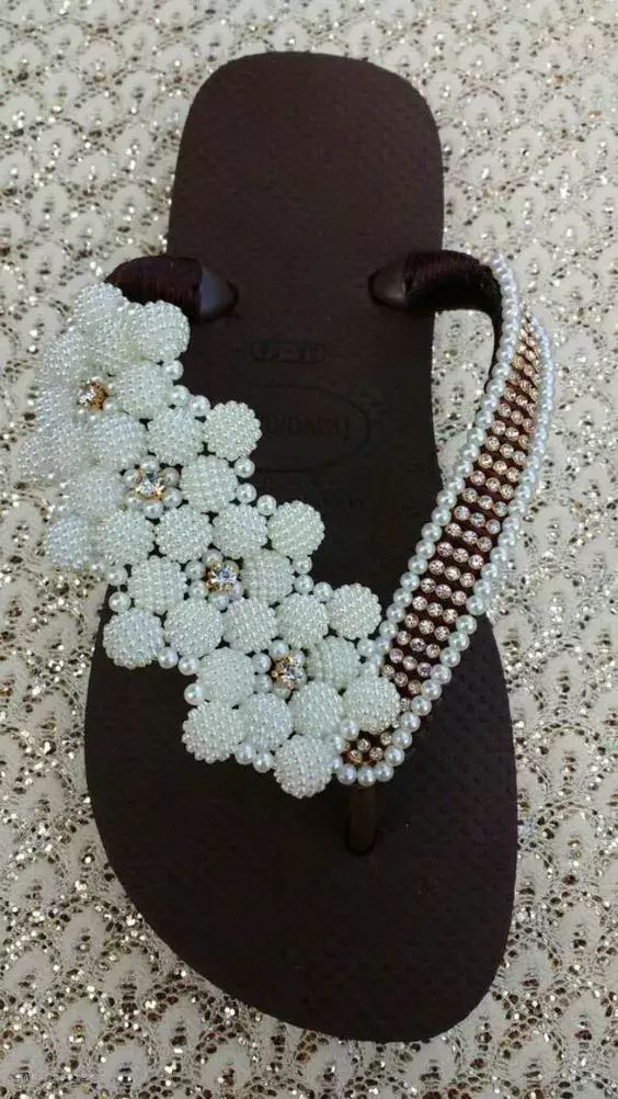 这么热的天,大家有没有穿人地拖的习惯?只局限于在家穿吗?有想过穿上人字拖走在街上既不显得尴尬却让人羡慕吗?十几元一双的人字拖,只需要用普通的珠子,动手改一改,秒变上百元的时尚凉鞋。对于比较旧的人字拖,还能穿的情况下,都可以拿出来改改哦!