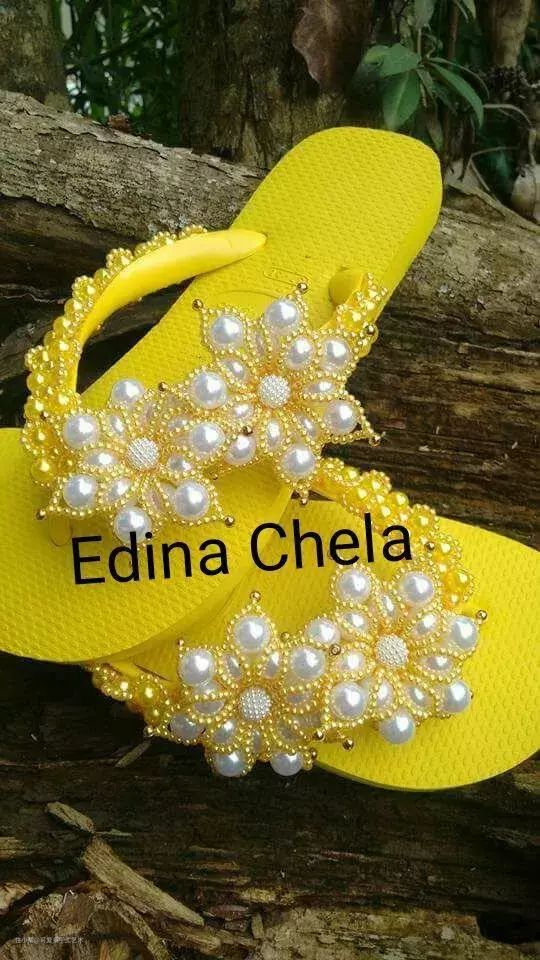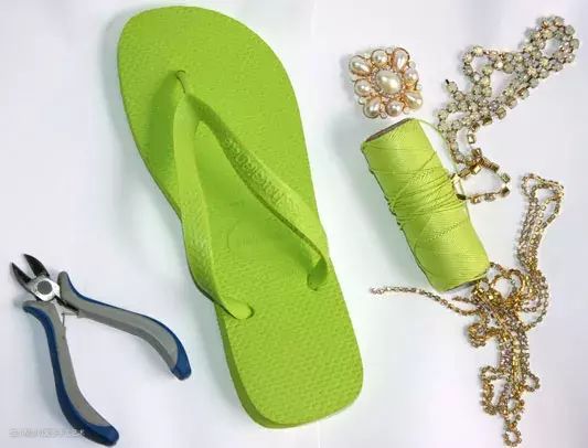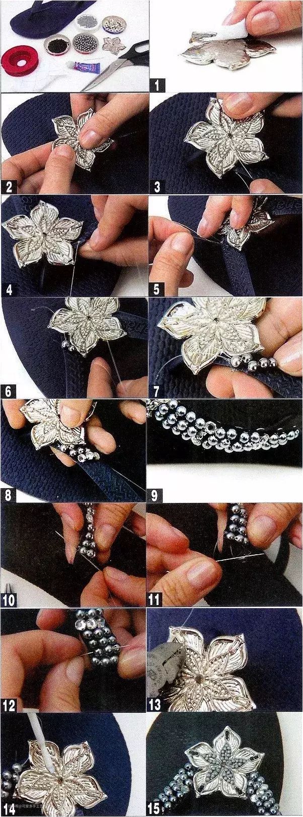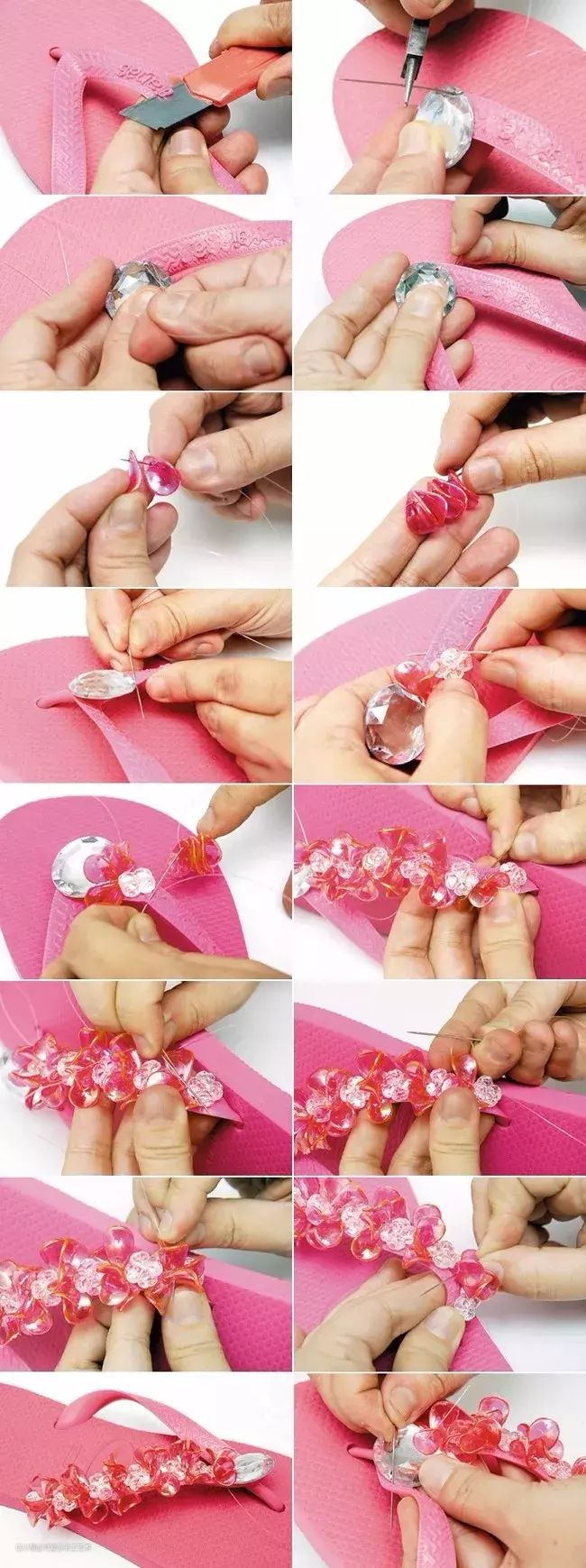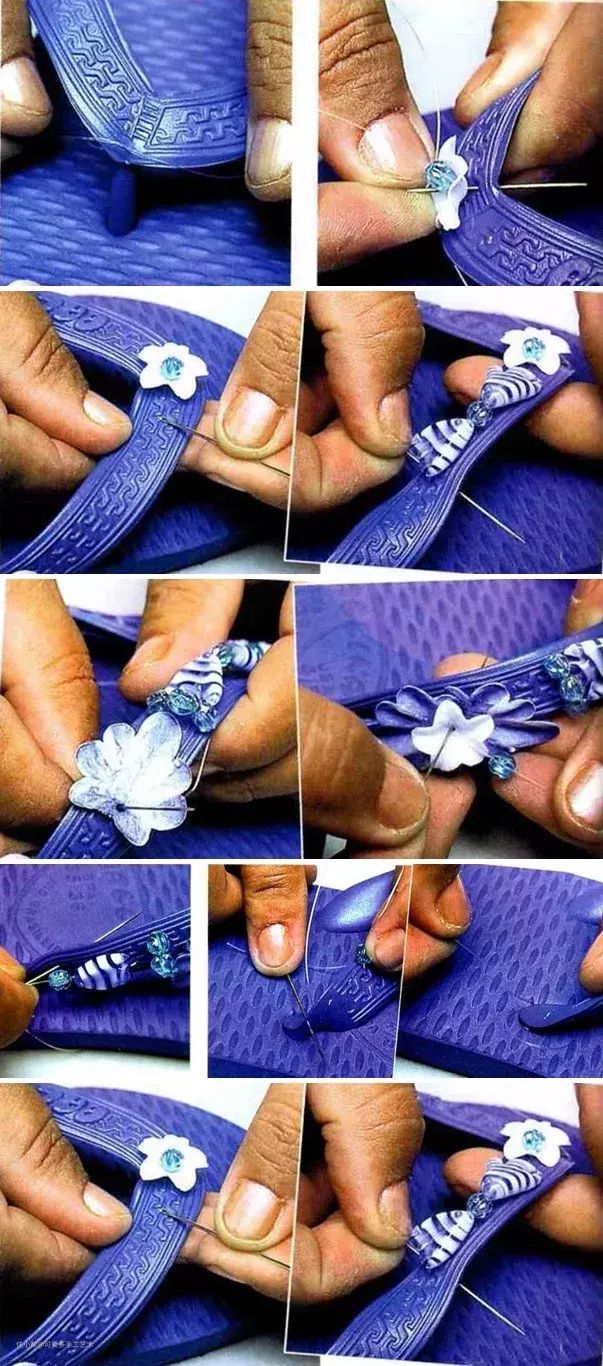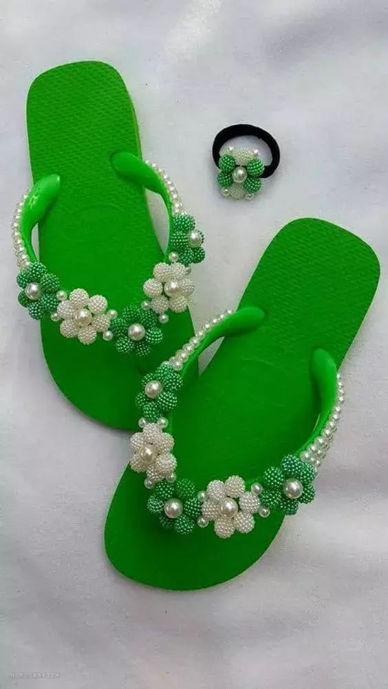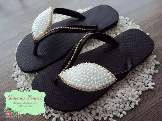 这么热的天,大家有没有穿人地拖的习惯?只局限于在家穿吗?有想过穿上人字拖走在街上既不显得尴尬却让人羡慕吗?十几元一双的人字拖,只需要用普通的珠子,动手改一改,秒变上百元的时尚凉鞋。对于比较旧的人字拖,还能穿的情况下,都可以拿出来改改哦!