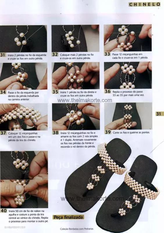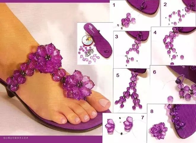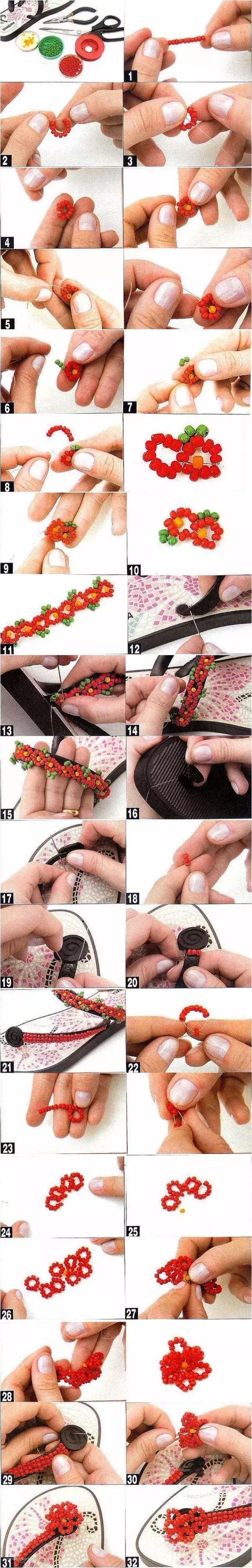 这些串珠的拖鞋做法也不难,只需要掌握串珠的手法,串一两颗珠子回针一下固定,你想串什么造型都可以。20种教程,大家一起跟着学吧!图解教程