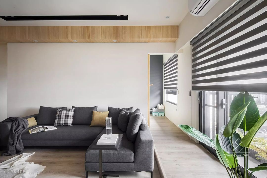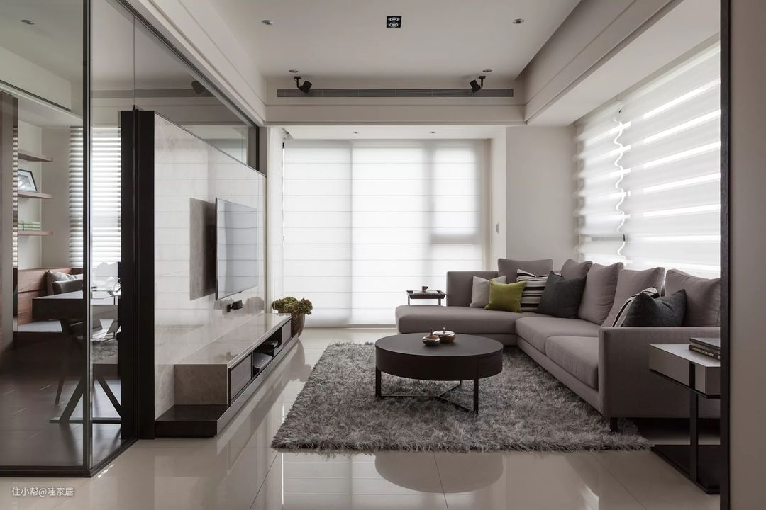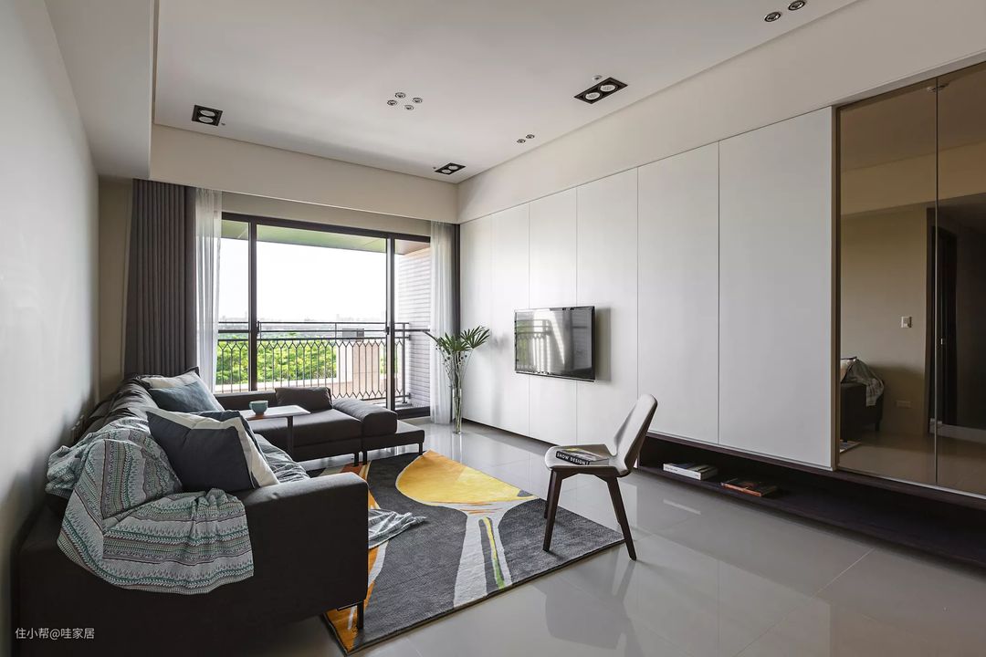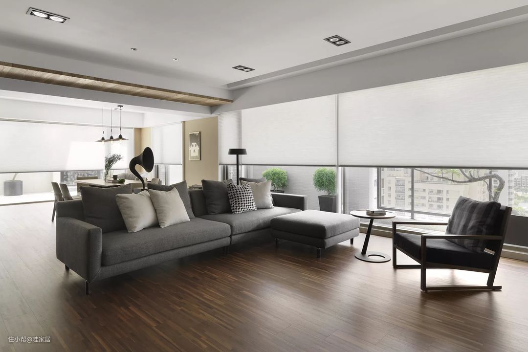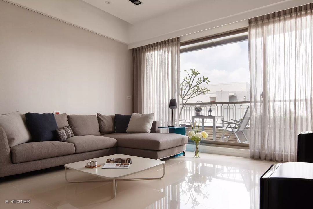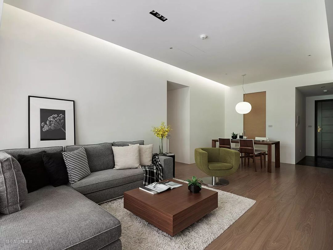 11、深灰色的沙发让浅色调的客厅内有个重点~