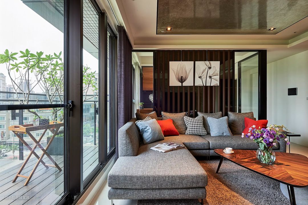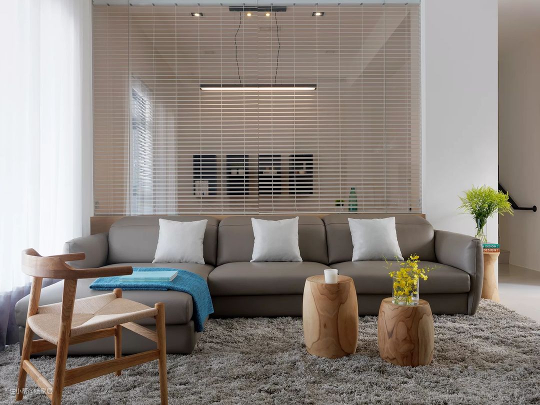 一个标准的天花板大概在2.43米,在这样的客厅里头,沙发就只能选低背的款式。如果客厅的天花板高度有3.05米~3.65米的话,可以选择高度较高的沙发。简而言之,沙发的高度应该要与天花板高度取得平衡,这样视觉上才不会有压迫感。