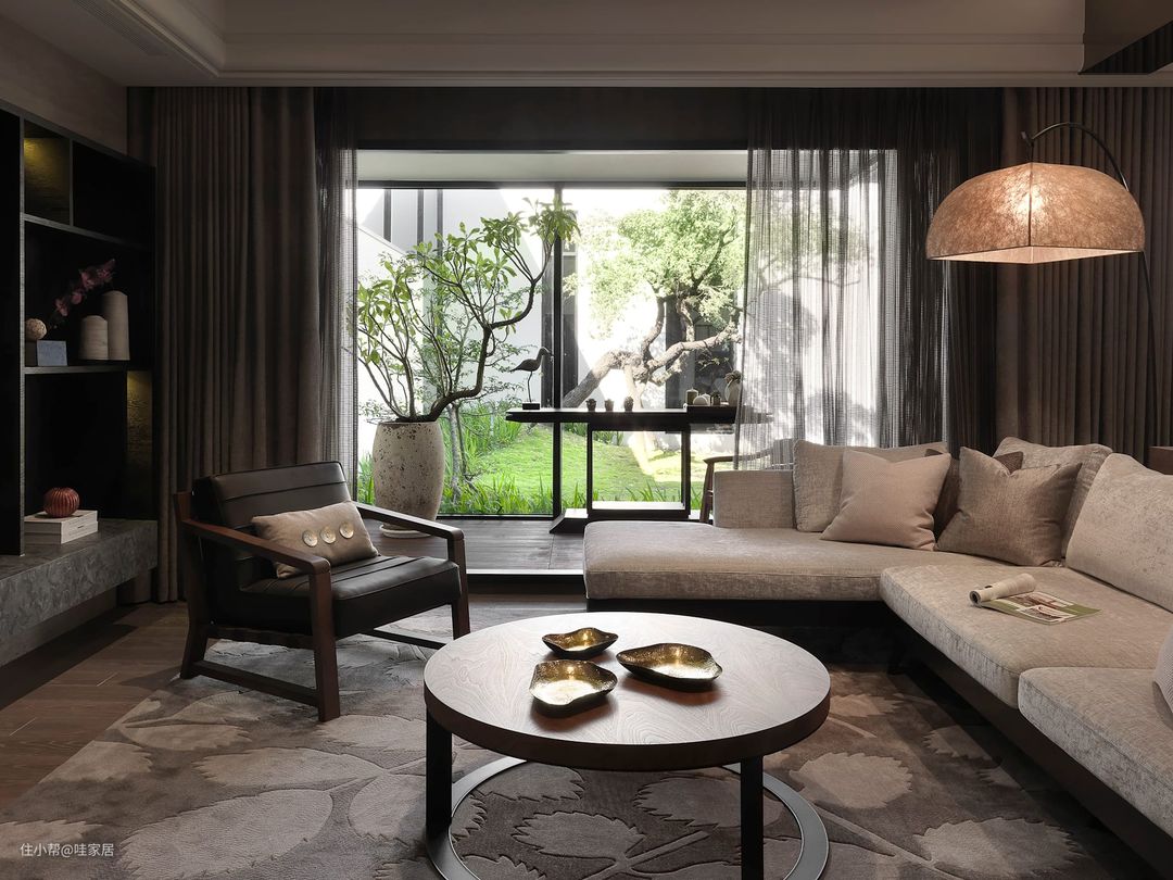 8、走典雅风格的客厅,最适合摆放一张中性色系的L型沙发~