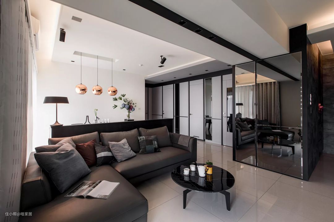 23、使用不同深浅的灰阶与黑白彩度,让空间在层次变化之中多而份惬意感。