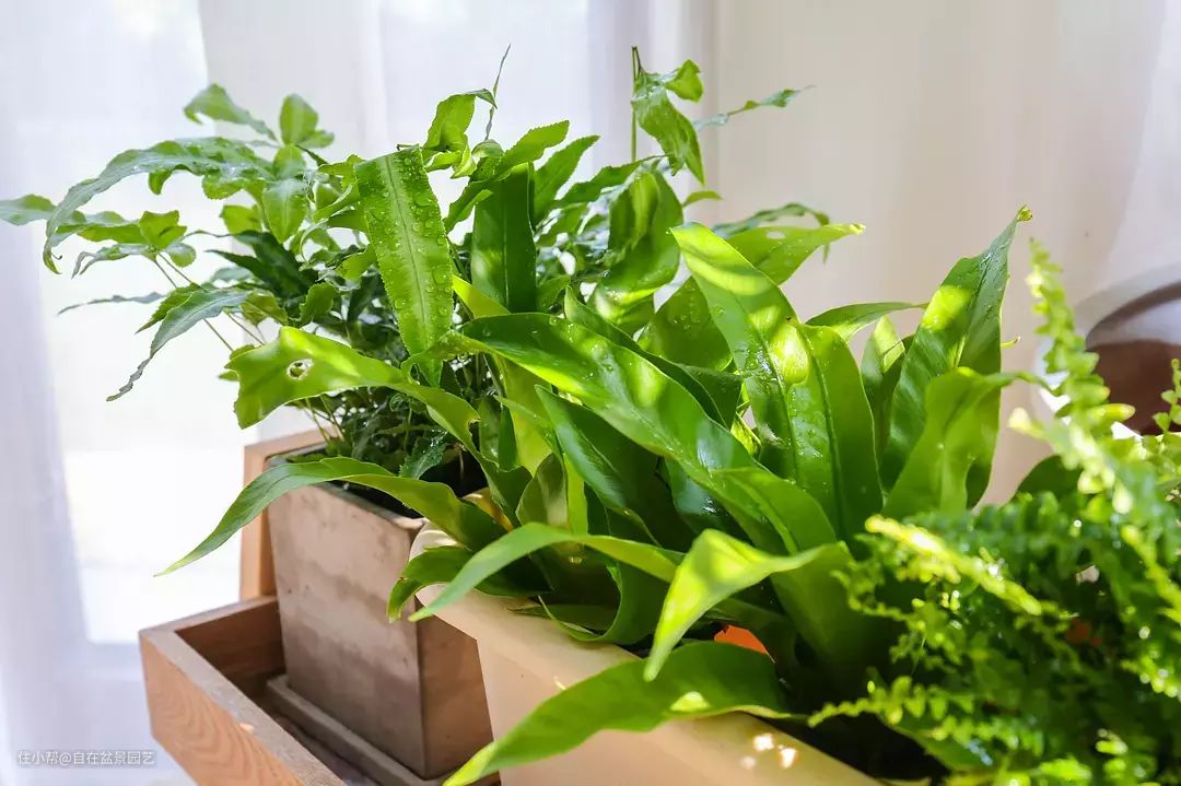 我很喜欢蕨,家里最多的也是蕨类植物,都很便宜,蕨类,喜阴植物,耐半荫,喜欢湿润的环境,不能忍耐强烈的直射阳光,晒一会儿就会受伤,之后叶片会卷曲枯黄。要求在仅有散光的隐蔽环境下生长,对空气湿度较敏感,需要定期喷水(每天或隔天)。比如可以放在卫生间,或者是房间不靠窗的角落里。如果长时间忘记浇水,蕨类的叶片开始枯萎,就要立马补充水分:浸盆+喷雾,并且把底部焦黄的茎叶剪掉。
