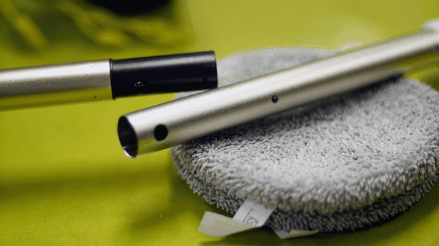 两段式的伸缩杆,想长就长,想短就短,使用方便,收纳起来也不占地方。如果是那种可以自定义长度卡位的话,倒是更方便,但是可能会更容易坏。伸缩杆顶部白色那一截是开关,往下推是开,往上推是关。