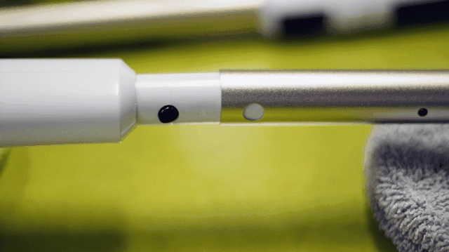 拖把杆和拖把的接口的活动非常灵活,视频里面也有展示出来,沙发底下、床底下、茶几底下,平时普通的拖把拖地很难拖到里面。不过这款比较小巧,能比较轻松的进这些缝隙间打扫。垂直90°的时候凹凸卡槽往后一卡就能定在这个进行固定使用。