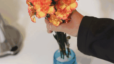 再将鲜花插入花瓶中,通过这个方法保存的鲜花保质期可以延长很久,全家都能一起欣赏美美的鲜花啦~