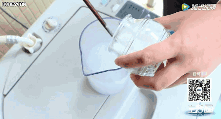 然后在装满水的洗衣机中倒入搅拌好的小苏打水。让洗衣机运行5分钟,小苏打就可以到达洗衣机的每一个死角~