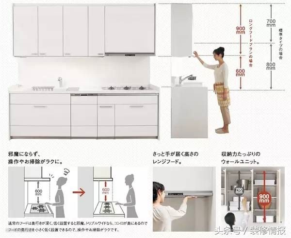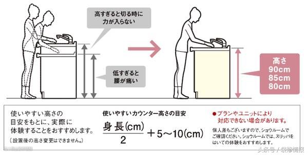 舒适的橱柜高度=身高/2+5~10 (cm),对应上图。
