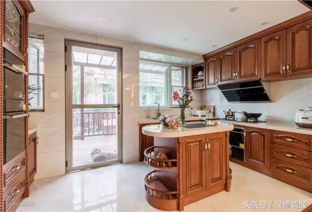 这是上海一个别墅业主家,业主定制了一套欧式简约橱柜,包括岛台共花费6万多,全实木,性价比还算高。橱柜体现了非常好的收纳功能,吊柜、碗柜和工作台的收纳功能都非常那好。