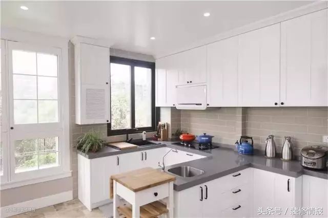 这是位于上海的阿南哥家,160㎡四房两厅三卫的休闲美式设计,入住一家三口。U型厨房扩大了视觉空间, 亮白色的橱柜、斗柜让厨房非常明亮,而且非常注重收纳功能。业主一直梦想者有个到岛台,新家装修时终于梦想成真。在岛台上增加了储物柜和水槽,做饭的时候,岛台可以作为操作台,早餐时,一家人也可以直接在厨房进行,旁边的桌子,可以用来做备餐台和储物台,方便实用。点击查看完整案例:这个父亲送给儿子的美式“豪宅”,最吸睛居然是收纳。