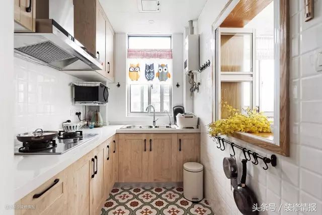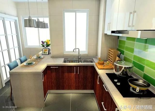注意:小户型的厨房建议做成餐厨一体的开放式,采用紧凑的I型布局,不浪费空间。