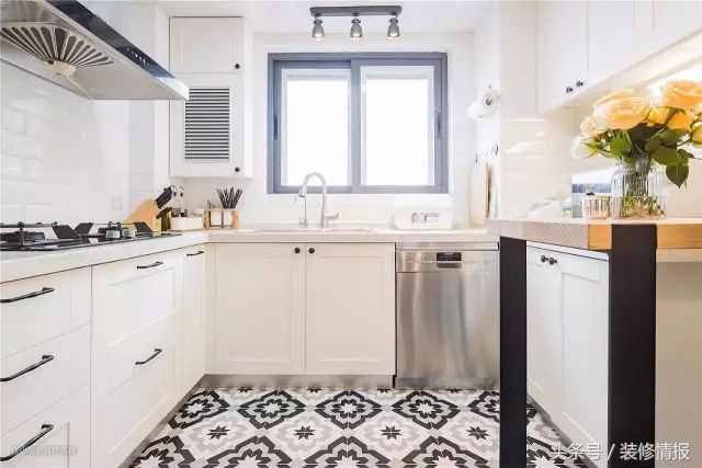 读者嘟嘟家的厨房大概8㎡左右,U型厨房是简约的北欧风,水槽的上方设置了侧顶灯,在台面选择上,最后业主还是多花了一些钱配备了更美观实用的大理石台面。油烟机是老板T型油烟机。业主非常喜欢烘培,所以洗碗机和烤箱是必备的。纯水机也不可少,女业主选了怡口纯水机,认为口碑和性价比还不错。净水机最重要的就是勤换滤芯。厨房的花纹地砖非常简约美观,是女业主在恒大挑选的。