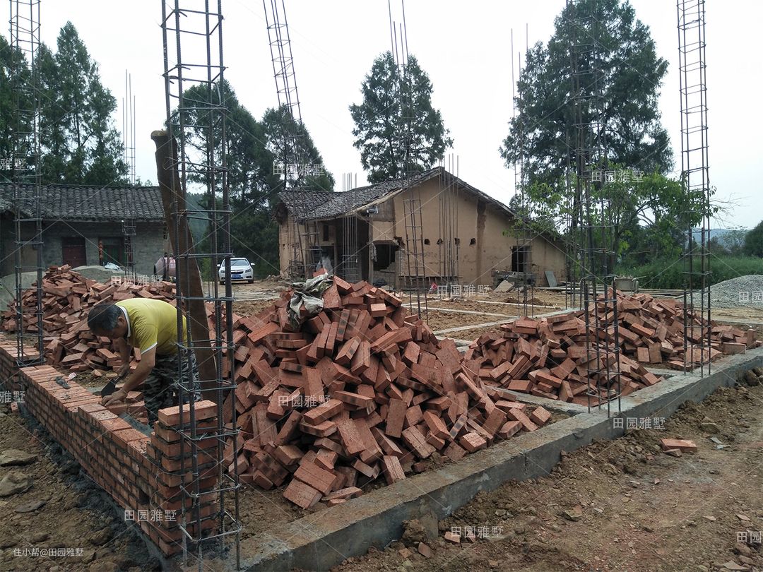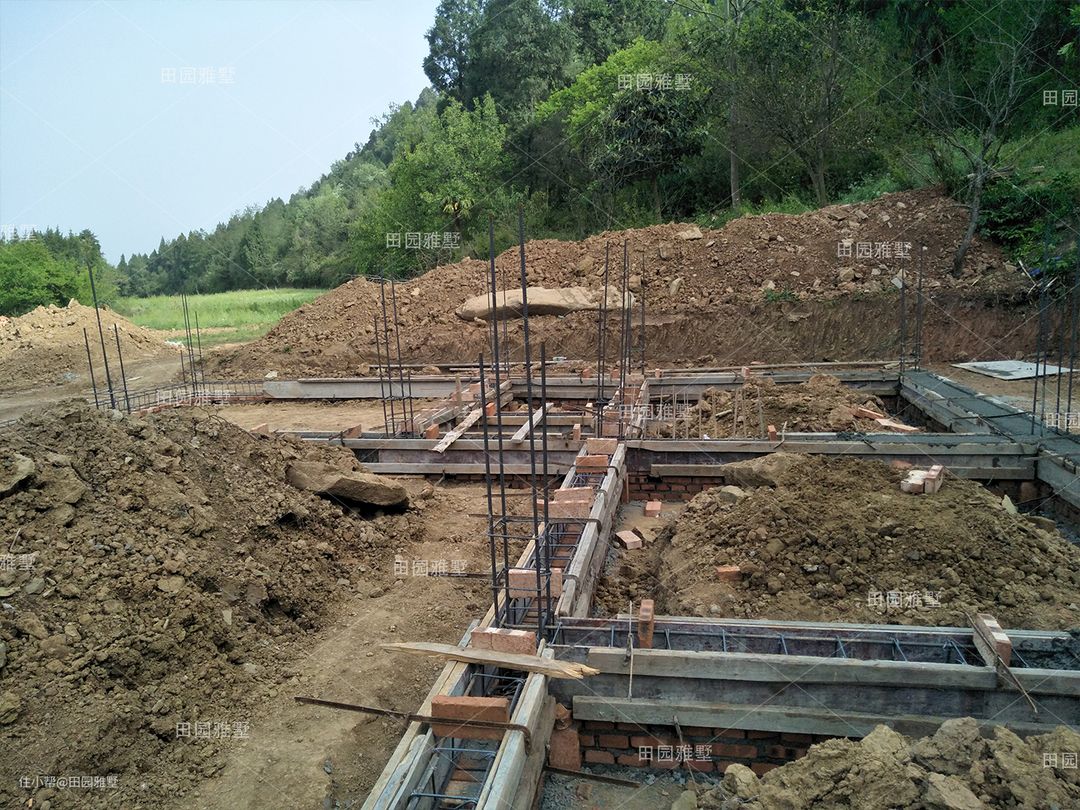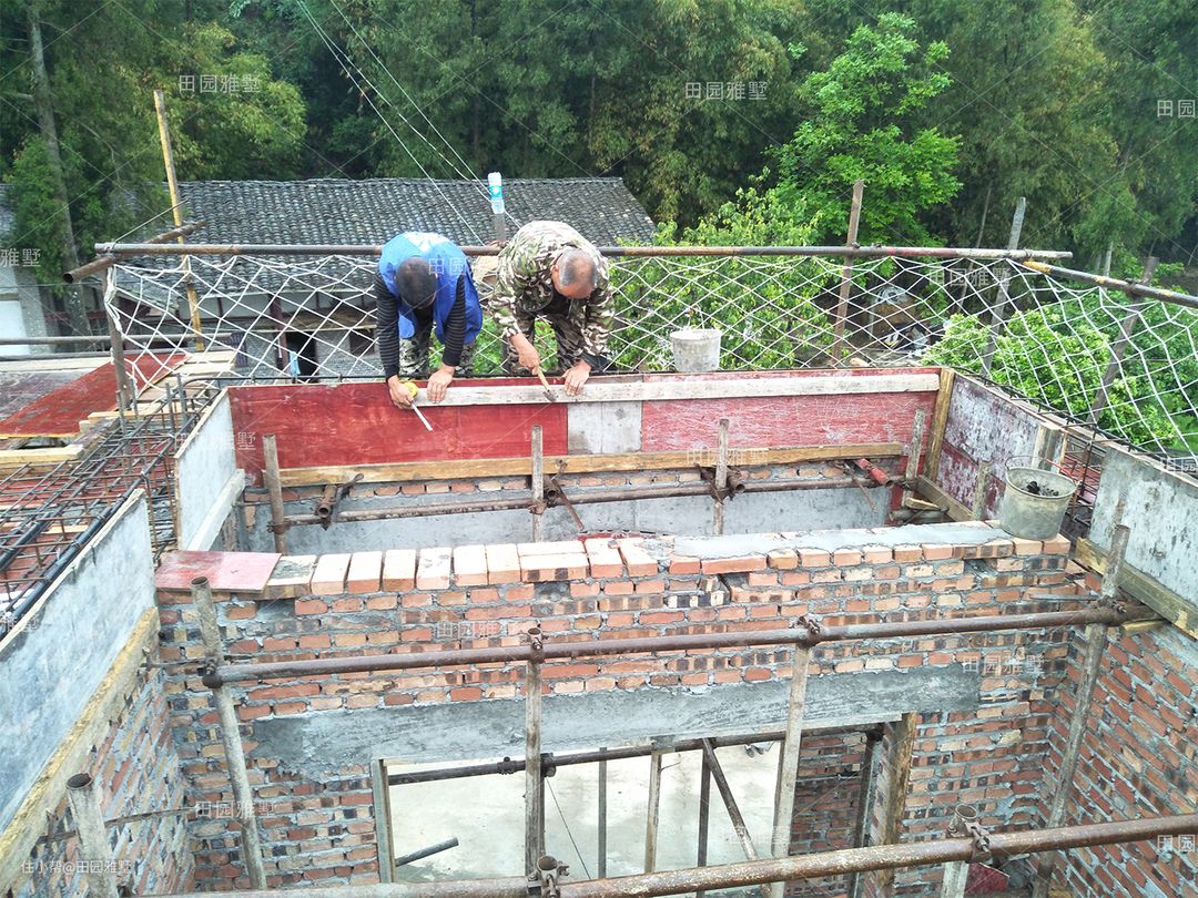 我们通常三个月就可以建成一套砖混结构别墅,堪比轻钢房屋的建设速度,但是因为剑阁项目进场道路问题、地材供应紧张、与阆中项目联动等缘故,实际工期只增加了一个月。
