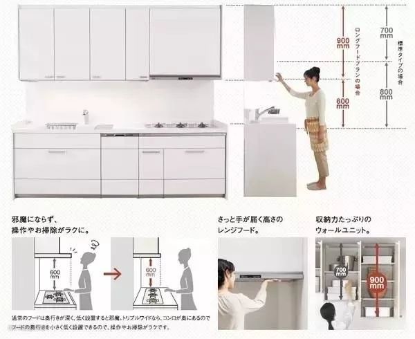 这三个高度决定了台面高度使用起来是否舒适,上、下柜的储物是否拿取方便。