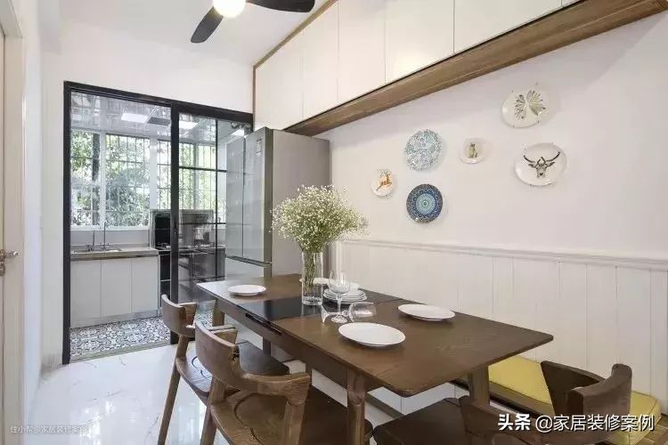 餐厅与厨房用透明玻璃门隔开,不仅可以采光,还能阻隔油烟,厨房的窗户很大采光效果非常好,让室内变得更加明亮,厨房安装的是整体橱柜,配的是集成灶。