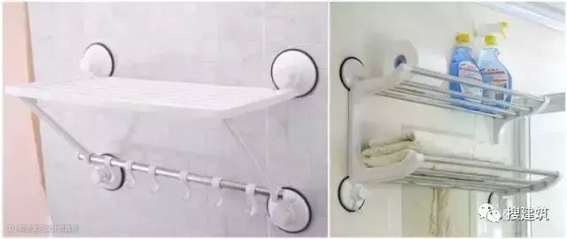 浴室的收纳,最方便的就是装一个吸盘式的架子,上面带有挂钩可以挂浴巾,还可以放一些沐浴用品,非常方便。