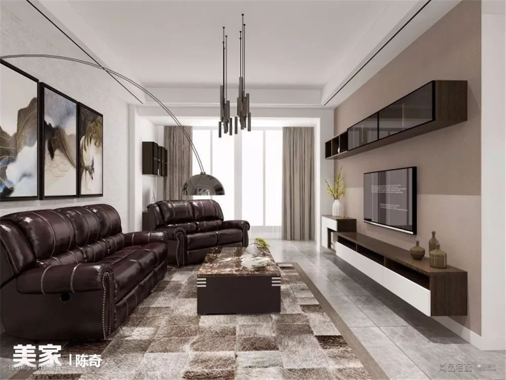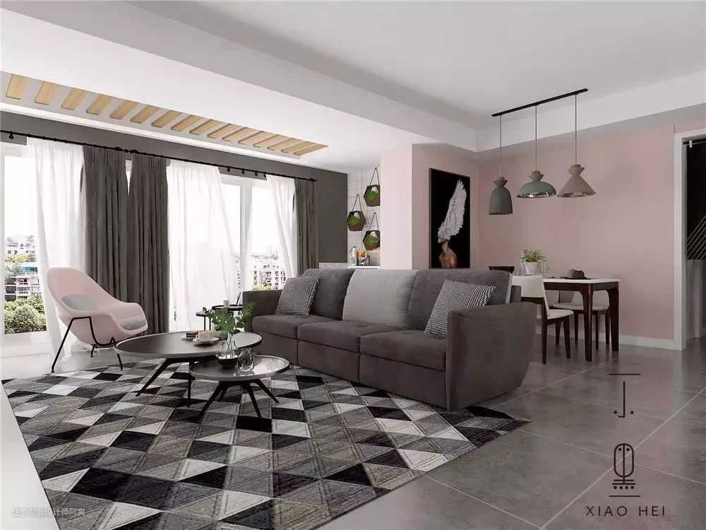 ▲浅灰色的地砖也很常见,喜欢灰色调调的话,可以用深色沙发和低饱和度的墙色进行搭配。