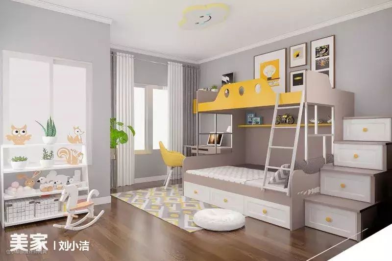 ▲儿童房可以适当地增加一些鲜色,但也别害怕用灰色,大面积用浅灰色,能降低深色地板的厚重感,也能让孩子视觉上感觉更舒服。