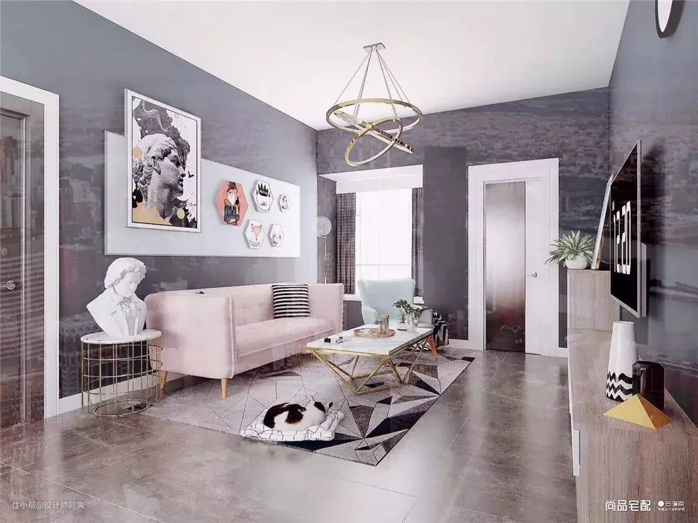 ▲白灰的地砖,可以搭配浅色墙面,再用上深色的家具,空间瞬间有了聚焦点,简约而不简单。