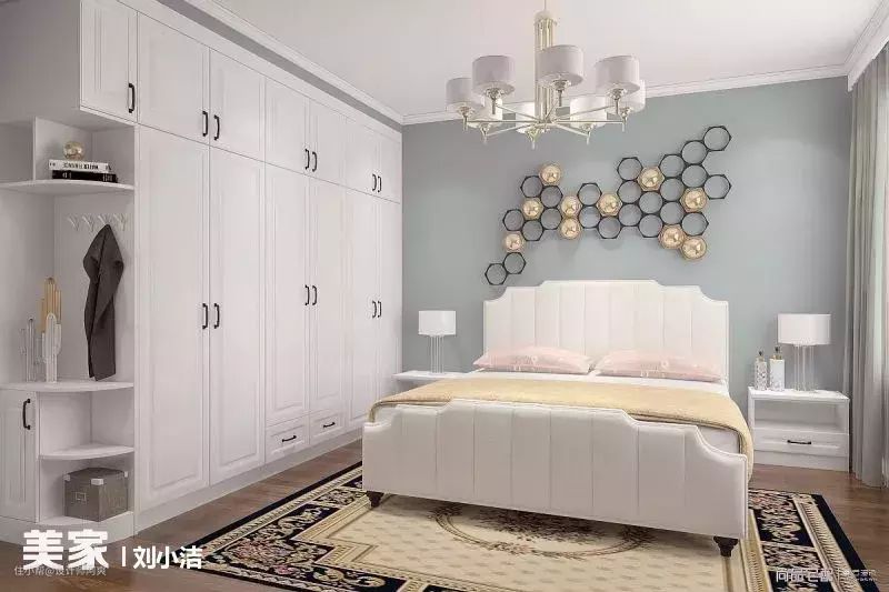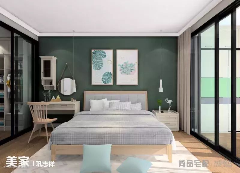 ▲喜欢蓝色的话也可以刷一面浅灰蓝的背景墙,但注意空间内的颜色不要出现太多种,床跟衣柜同色是关键。