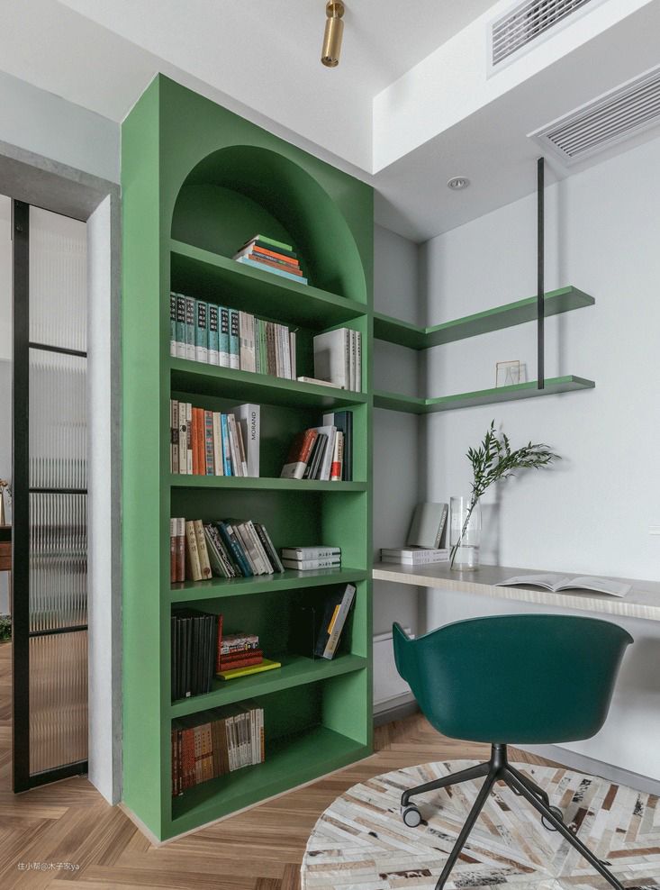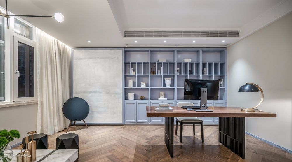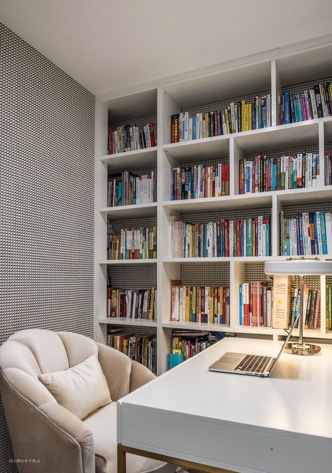1、独立书房:专门辟出一个书房的空间,定制一个大书柜配上舒服的书桌,可以办公或休息。