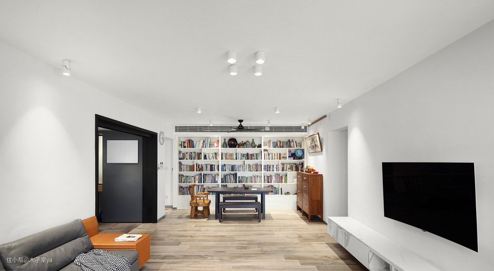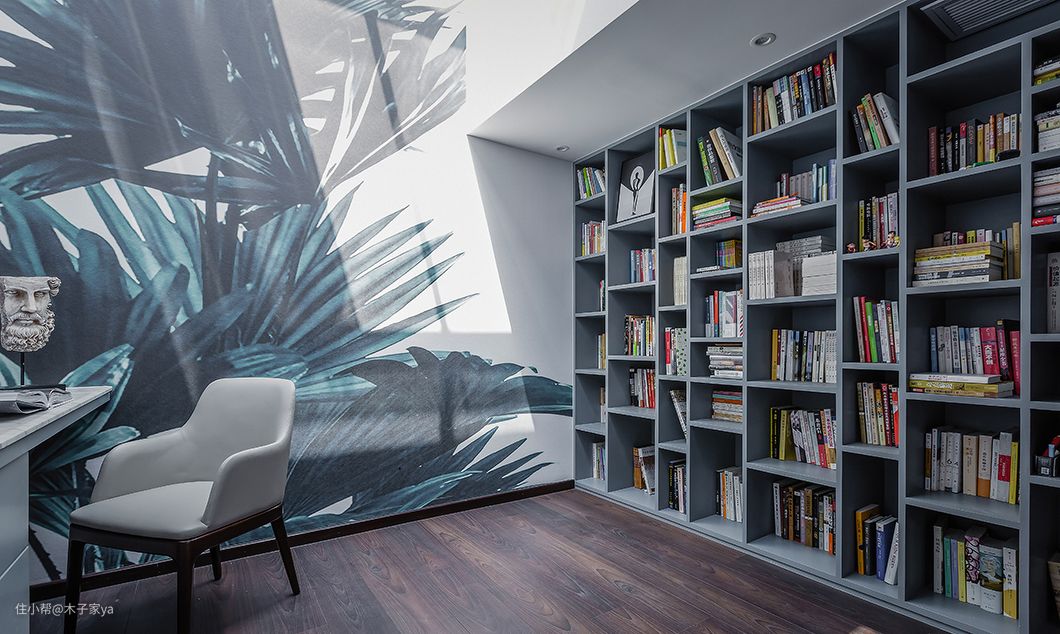 1、设计阶段:如果想要拥有一个满墙到顶的书柜,建议装修设计阶段就把这一想法纳入方案里面,选好书柜的位置更从容。