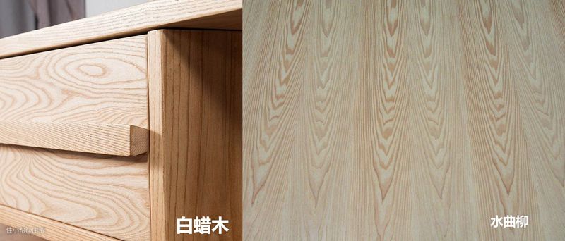 白蜡木的纹理其实更大一些,密度也高很多,简单点就是比较硬实。白蜡木纹理更多不规则,整洁交错的山型或水型木纹,更自然美观,水曲柳的纹理更加规则。