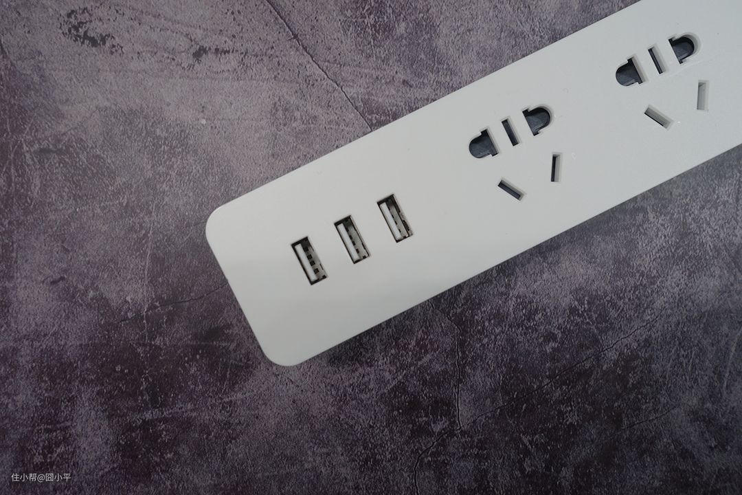排插上提供三个USB充电口,这样就能够节省USB充电器的使用了。USB充电口的最大充电电流是2.1A,总共提供3.1A的输出电流。多个设备一起插到三个USB口上的话肯定会分流的。所以,多个USB供电设备同时使用的话,为了保证设备稳定运行,要注意设备的额定电流。对于额定电流比较高的设备,还是建议单独使用充电器插到AC插座上供电。