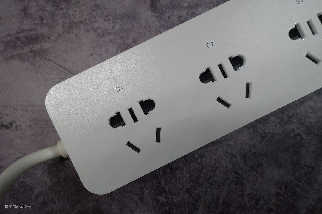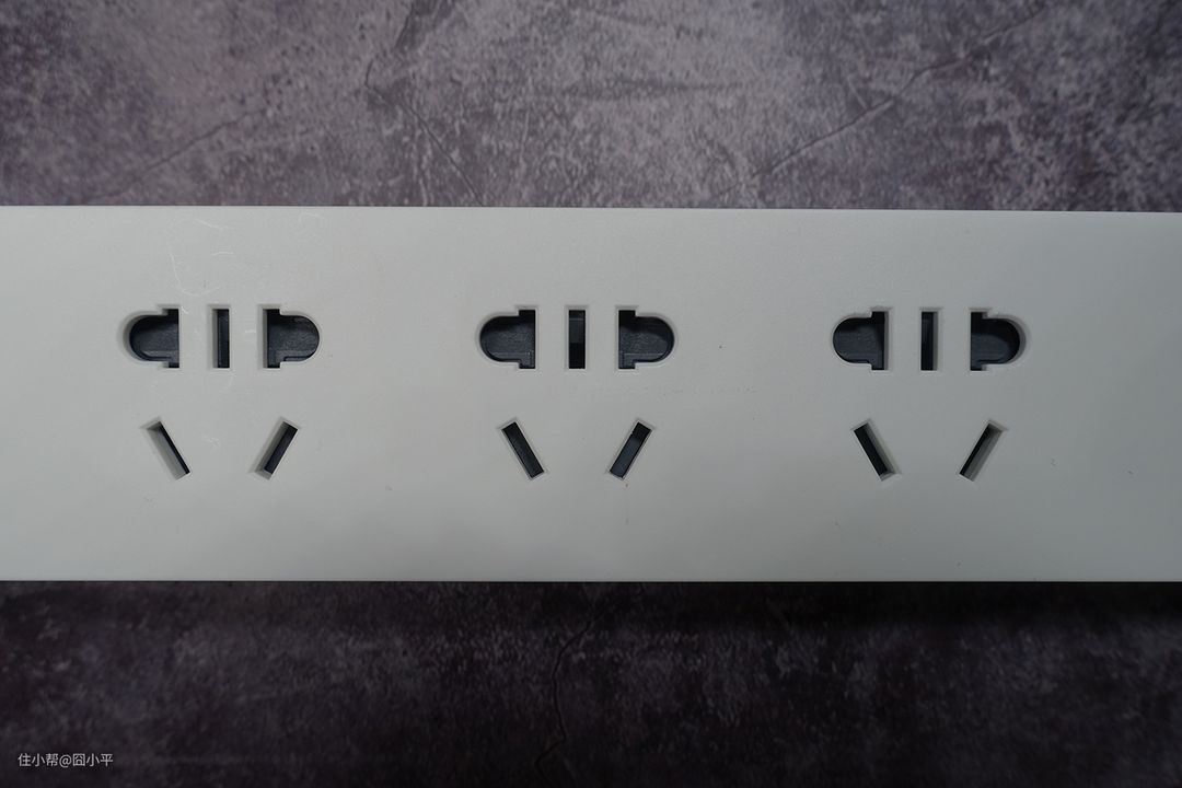 排插上有三个普通的AC插座,每个插座间距45mm,保证插头之间互不影响。