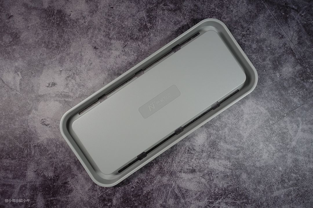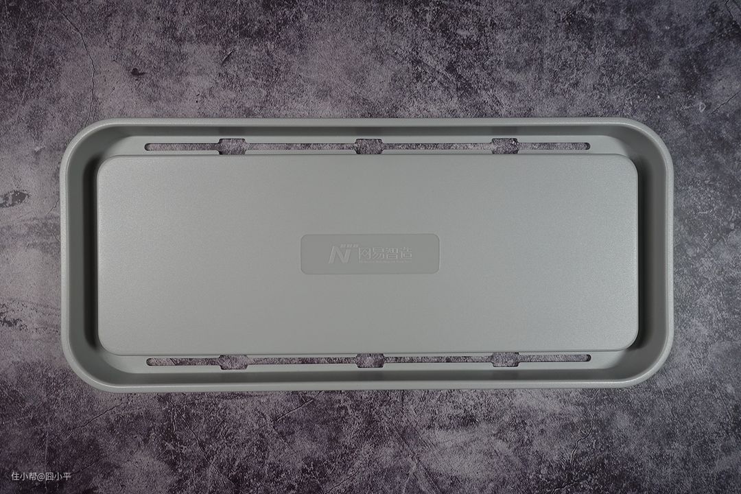 收纳盒的盒身和盒盖分离,盒身是白色的,盒盖是灰色的,整体配色比较简洁,颜值在线。收纳盒采用ABS塑料板材,盒子的厚度和硬度都还行。但是说实话,我摸起来感觉没有斐讯TC1的质感好。网易智选收纳盒的塑料感比斐讯TC1更重一些。