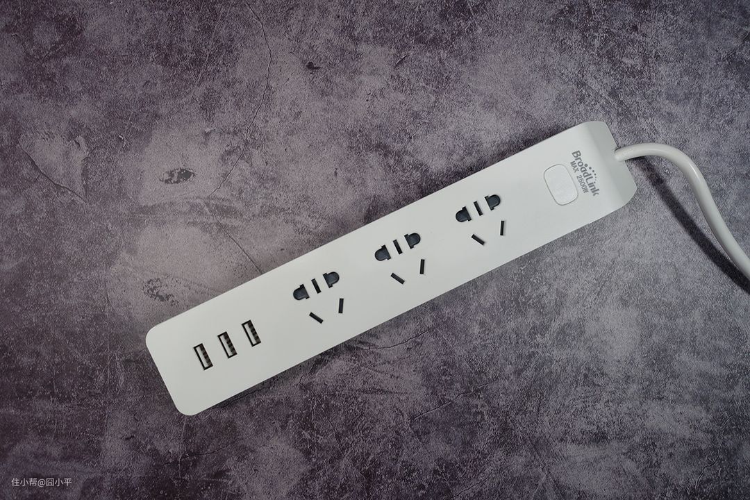 收纳盒是为了让走线更为美观,排插才是真正为了解决电源插口不足的问题。为了搭配收纳盒使用,我首先选择了这款博联智能排插MP1。选择这款排插,一方面是因为尺寸比较合适,方便放入收纳盒中,另一方面是看中其可以支持WIFI智能控制的功能,方便以后打造智能家居。