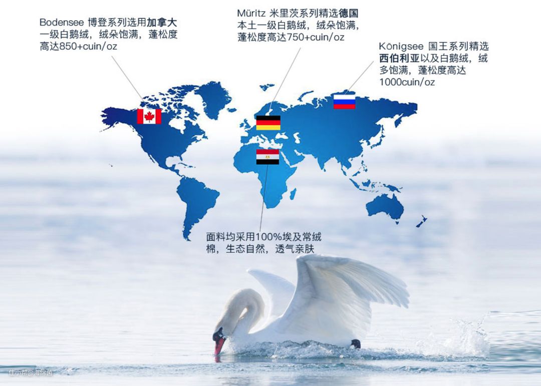 鹅绒的品质依次递增,当然价格也是成正比的,衡量了下自己的预算,最终选择了米里茨系列。