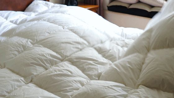 用手按压鹅绒被再松开,之后鹅绒被会快速回弹,重新吸收空气再次达到饱满的状态。