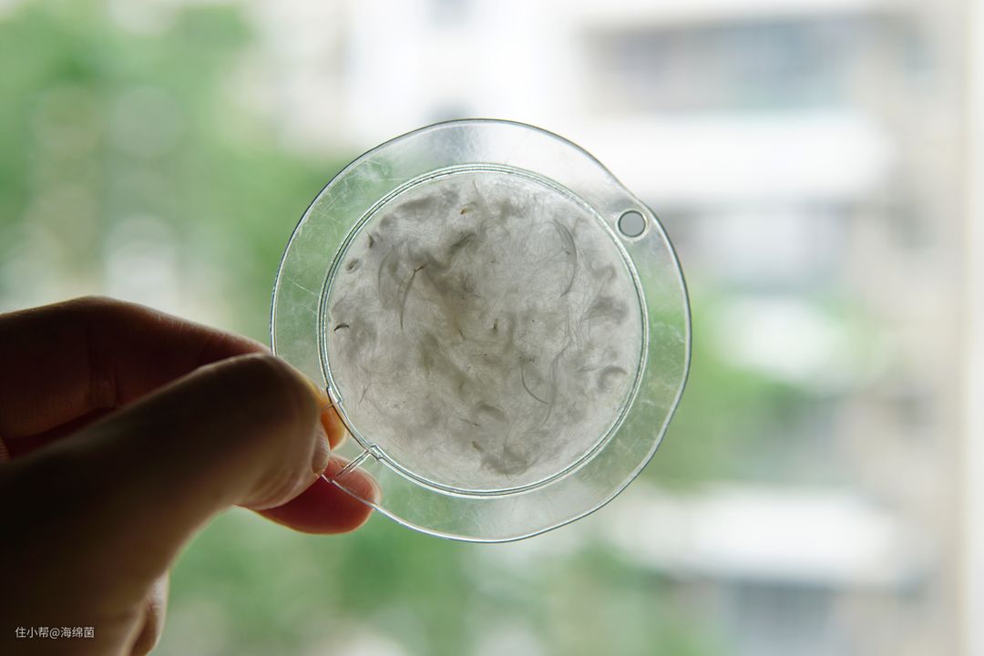只取出了一半的鹅绒,就能看鹅绒的体积变大了好几倍,同时非常的轻盈,有点类似蒲公英种子的感觉,以至于我拍照的时候都要憋一下呼吸。