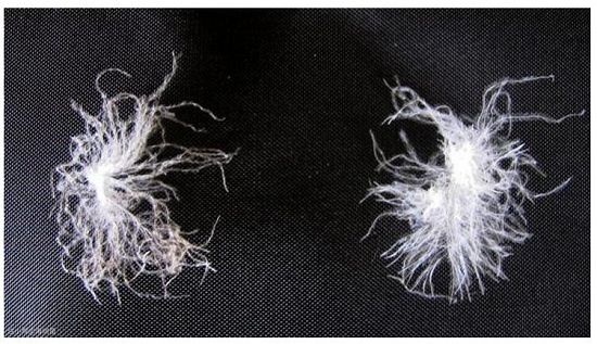 含绒量指的就是绒丝和绒朵在羽绒中的占比。