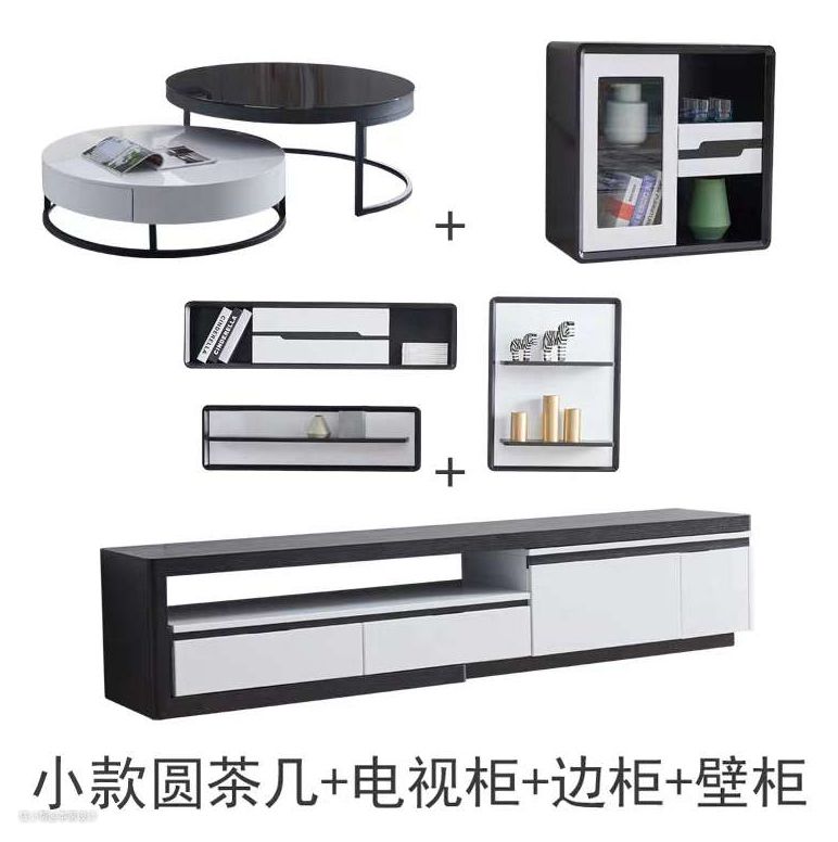 由于个人钟爱于黑白灰,所以客厅剩余部分选择了黑白纯色的圆茶几+电视柜+边柜+壁柜的组合(6000元左右),黑白的搭配让整个客厅显得很安逸,边柜和壁柜能够充分利用空间,放置一些书籍也便于自己拿取,冲一杯咖啡,坐在沙发上安静的读一本书,享受一下生活。