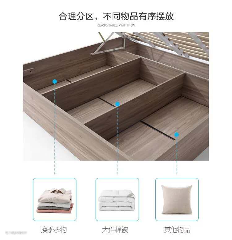 其次就是两个卧室了,主卧我选择了箱体的储物床搭配两个床边小柜子,颜色上我选择了百搭性强的胡桃木色。这款大容量的储物床堪比一个衣柜,而且合理分区,不同的物品可以做到有序摆放。床头我也选择了储物床头,可以用来放置一些小物件。考虑到房间的卫生,我选择了密封型落地床,避免了床底积灰,也方便自己的打扫。花2000多块钱买到这么一套家具,我个人还是觉得很满意的。