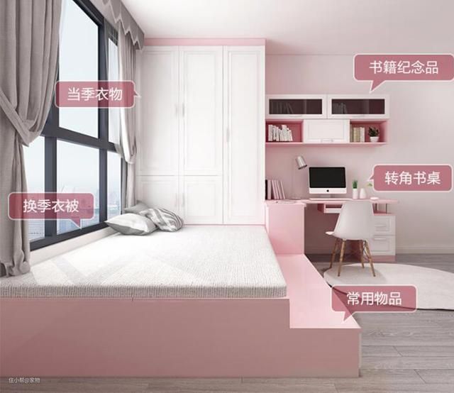 当然这样的衣橱高度由于较为低矮,直接摆放在室内会显得比较占空间,如今有很多会将衣橱与床铺结合,既方便孩子拿取衣物,有节约了空间,更适合小户型家庭使用。